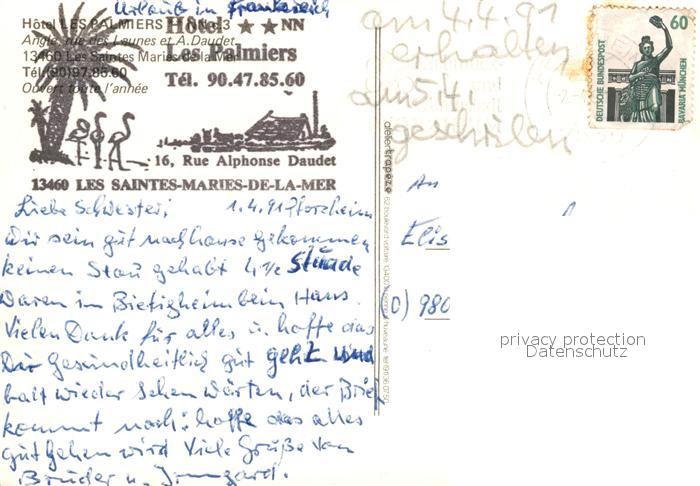 13039373 Les Saintes-Maries-de-la-Mer Hotel les Palmiers postalisch nicht gelaufen Erhaltung siehe scans [WerneD78] KatCode: 11170013213096