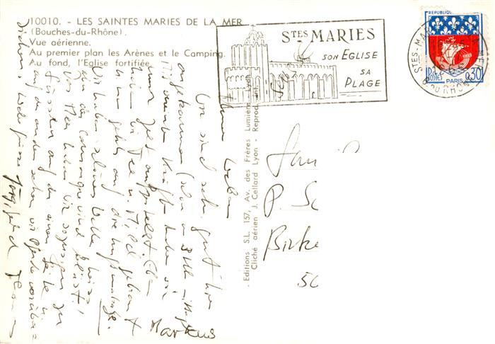 13869103 Les Saintes-Maries-de-la-Mer Vue aerienne Les Arenes et le Camping Au fond l’Eglise fortifiee postalisch gelaufen Erhaltung siehe scans [FriedD77] carte postale Frie Katcode 11170013213096