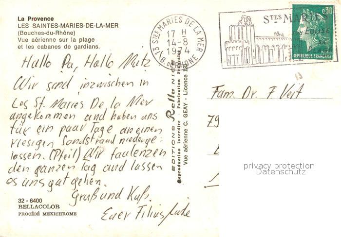 13657215 Les Saintes-Maries-de-la-Mer Vue aérienne sur la plage et les cabanes de gardians postalisch gelaufen Erhaltung siehe scans [FriedD77] carte postale Frie Katcode 11170013213096