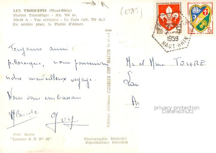13826335 Les Trois Epis Vosges Monument Le Galz Station Touristique Plaine d Alsace vue aérienne postalisch gelaufen Fliegeraufnahme Erhaltung siehe scans [FriedD77] Fliegeraufnahme carte postale Frie Katcode 11170088388276