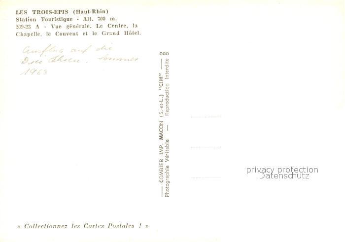 13237289 Les Trois Epis Vosges Station Touristique Centre Chapelle Grand Hotel vue aérienne postalisch nicht gelaufen Erhaltung siehe scans [FriedD77] KatCode: 11170088388276