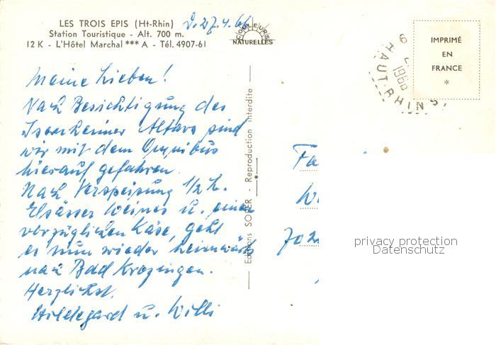 13768171 Les Trois Epis Vosges Station Touristique Hôtel Marchal vue aérienne postalisch gelaufen Erhaltung siehe scans [FriedD77] carte postale Frie Katcode 11170088388276