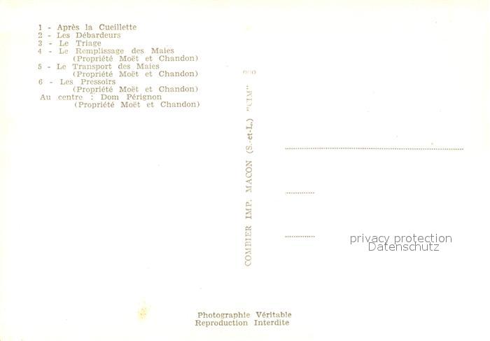 13545879 Les Vendanges Apres la Cueillette Les Debardeurs Le Remplissage des Maies et le Transport Les Pressoirs Dom Perignon postalisch nicht gelaufen Erhaltung siehe scans [WerneD78] KatCode: 11170071471318
