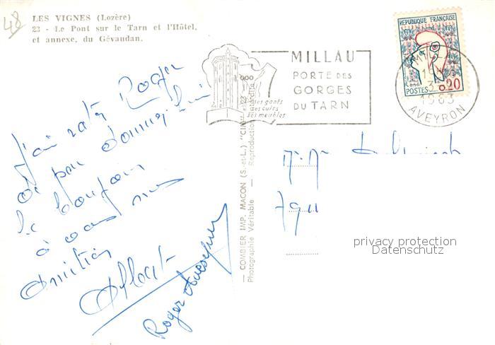 13593907 Les Vignes Lozere Le Pont sur le Tarn et l’Hotel et annexe du Gevaudan postalisch gelaufen Erhaltung siehe scans [WerneD78] carte postale Wern Katcode 11170048148195