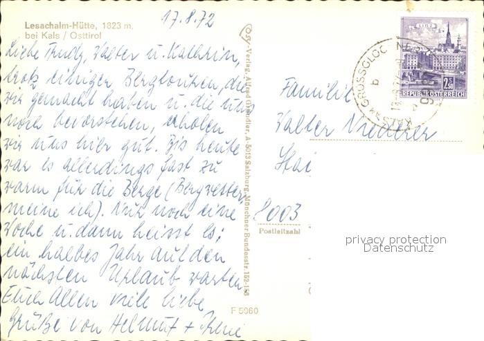 71566572 alte Postkarte Lesachalm Huette mit Gloedis Hohe Tauern postalisch gelaufen Erhaltung siehe scans KatCode: 11390333070712