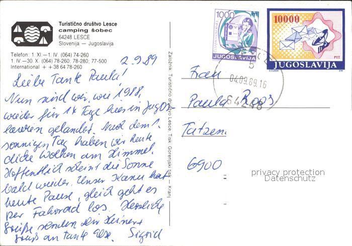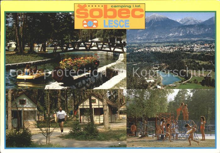 old postcard Lesce Camping Sobec postalisch gelaufen Erhaltung siehe scans