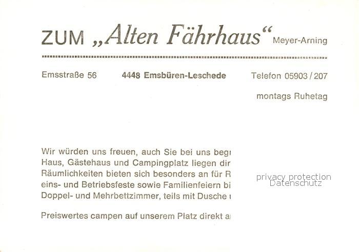 73543725 Leschede Gaestehaus Pension Restaurant Zum Alten Faehrhaus postalisch nicht gelaufen Werbekarte (keine Postkarte) Erhaltung siehe scans [FriedD77] KatCode: 11110003454010
