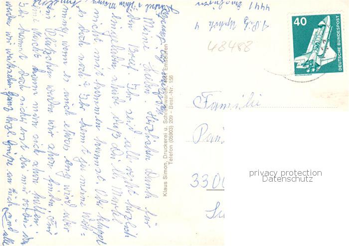 73854379 alte Postkarte Leschede Kapelle Waldschule Kindergarten Gefallenengedenkstaette Campingplatz an der Ems postalisch gelaufen Erhaltung siehe scans [FriedD77] KatCode: 11110003454010