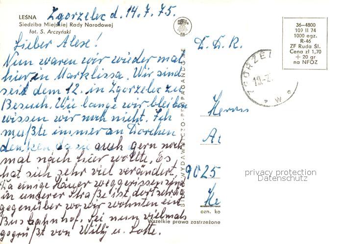 13533202 old postcard Lesna Marklissa Siedziba Miejskiej Rady Narodowej postalisch gelaufen Erhaltung siehe scans [FriedD77] KatCode: 11410