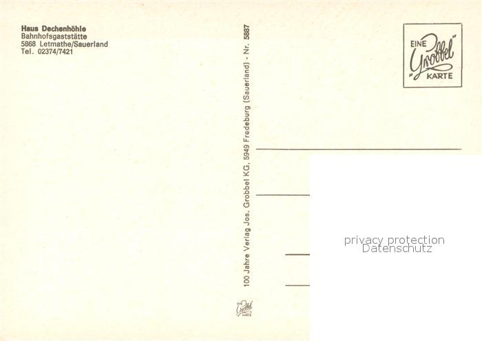 73719959 Letmathe Oestrich Haus Dechenhoehle Bahnhofsgaststaette postalisch nicht gelaufen Erhaltung siehe scans [FriedD77] KatCode: 11110005962024