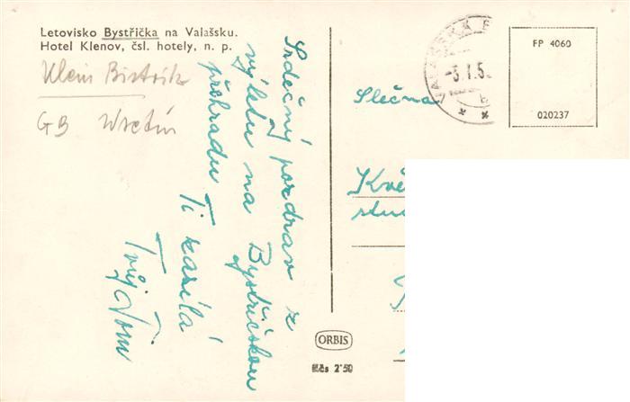73959742 old postcard Letovisko Bystricka na Valassku Klein-Bistritz CZ Hotel Klenov postalisch gelaufen Erhaltung siehe scans [FriedD77] KatCode: 11520
