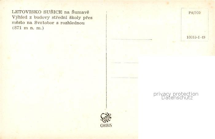 13597634 Letovisko Susice na Sumave Vyhled z budovy stredni skoly pres mesto na Svatobor s rozhlednou postalisch nicht gelaufen Erhaltung siehe scans [WerneD78] KatCode: 11520