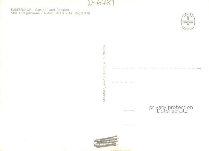73707111 Lettgenbrunn Gasthof Sudetenhof postalisch nicht gelaufen Erhaltung siehe scans [LiesaD40] KatCode: 11110006435016