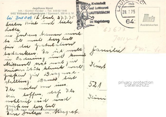 73723161 alte Postkarte Lettgenbrunn Jagdhaus Horst Gaststaette Terrasse postalisch gelaufen Erhaltung siehe scans [FriedD77] KatCode: 11110006435016