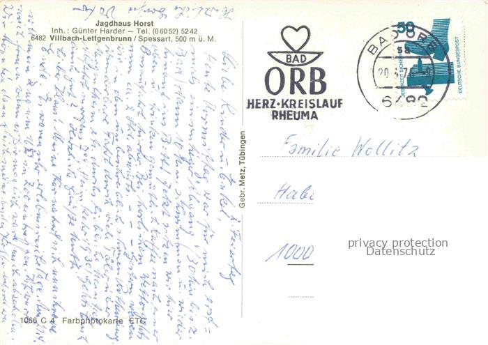 74025822 alte Postkarte Lettgenbrunn Jossgrund Main-Kinzig-Kreis Hessen Jagdhaus Horst Gasthaus Gartenterrasse postalisch gelaufen Erhaltung siehe scans [FriedD77] KatCode: 11110006435016