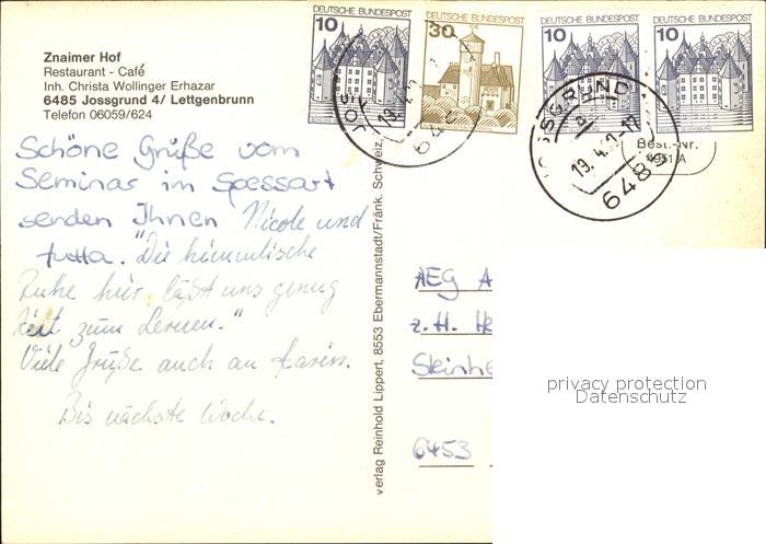 72600434 alte Postkarte Lettgenbrunn Panorama Hochspessart Restaurant Cafe Znaimer Hof postalisch gelaufen Erhaltung siehe scans [FriedD77] KatCode: 11110006435016
