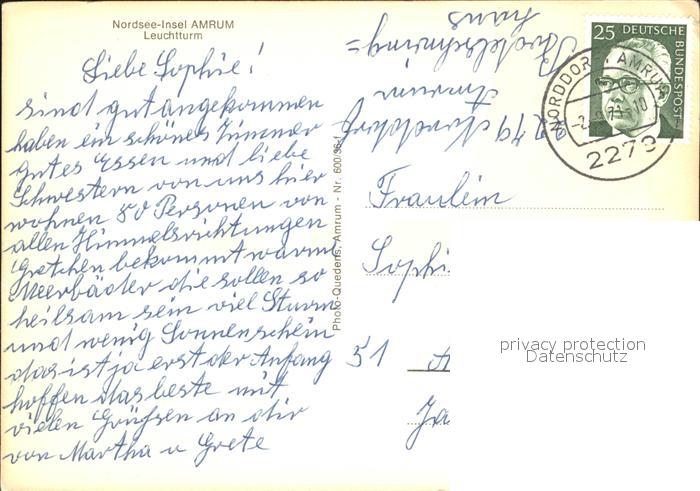 alte Postkarte Leuchtturm Lighthouse Amrum postalisch gelaufen Erhaltung siehe scans