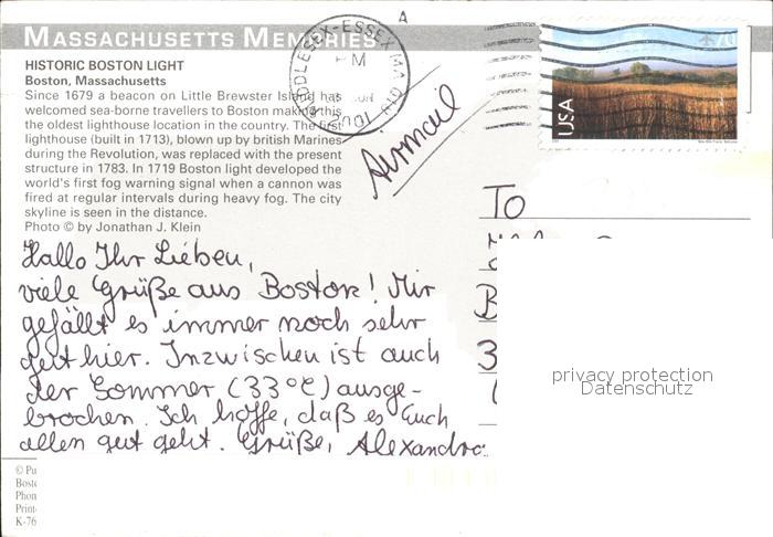 alte Postkarte Leuchtturm Lighthouse Boston Light Massachusetts postalisch gelaufen Erhaltung siehe scans