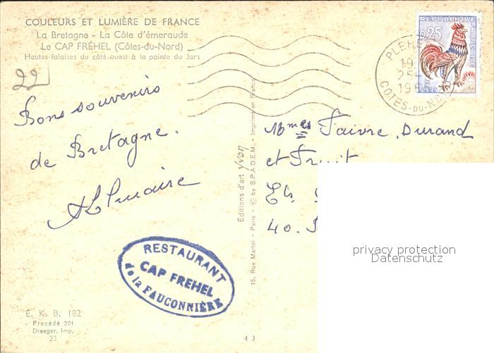 alte Postkarte Leuchtturm Lighthouse Cap Frehel Bretagne postalisch gelaufen Erhaltung siehe scans