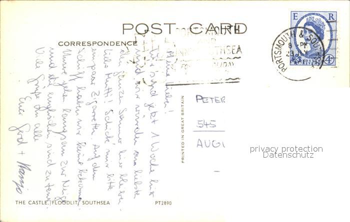 alte Postkarte Leuchtturm Lighthouse Castle Floodlit Southsea postalisch gelaufen Erhaltung siehe scans
