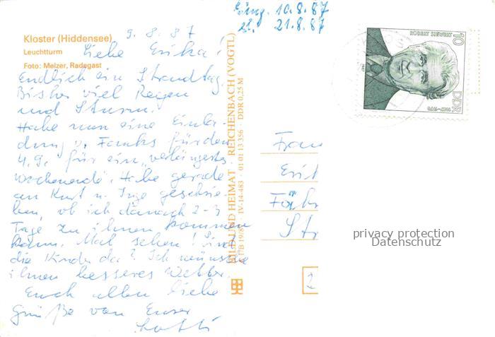 74150614 alte Postkarte Leuchtturm Lighthouse Faro Phare– Kloster Hiddensee postalisch gelaufen Erhaltung siehe scans [IrynaD87] KatCode: 22140000002000