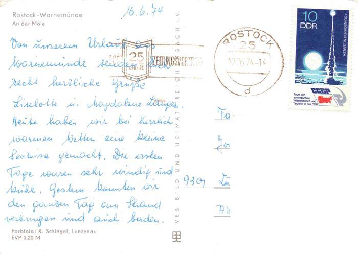 74027818 alte Postkarte Leuchtturm Lighthouse Faro Phare– Rostock Warnemuende An der Mole postalisch gelaufen Erhaltung siehe scans [IrynaD87] KatCode: 22140000002000