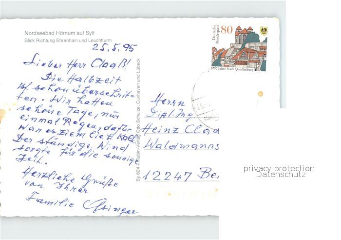 alte Postkarte Leuchtturm Lighthouse Hoernum Sylt Ehrenhain postalisch gelaufen Erhaltung siehe scans