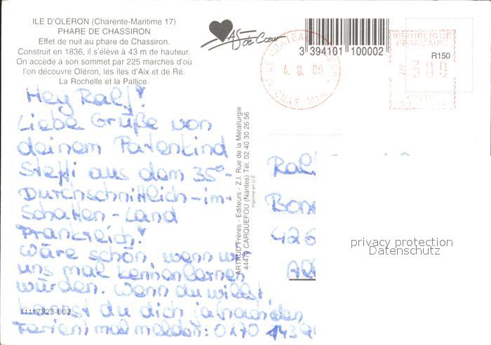 alte Postkarte Leuchtturm Lighthouse Ile d Oleron Phare Chassiron postalisch gelaufen Erhaltung siehe scans