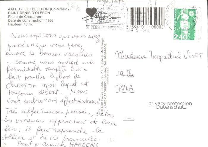 alte Postkarte Leuchtturm Lighthouse Ile d Oleron Saint-Denis Phare Chassiron Fliegeraufnahme postalisch gelaufen Erhaltung siehe scans