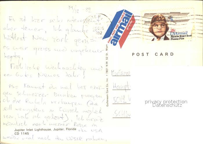 alte Postkarte Leuchtturm Lighthouse Jupiter Florida postalisch gelaufen Erhaltung siehe scans