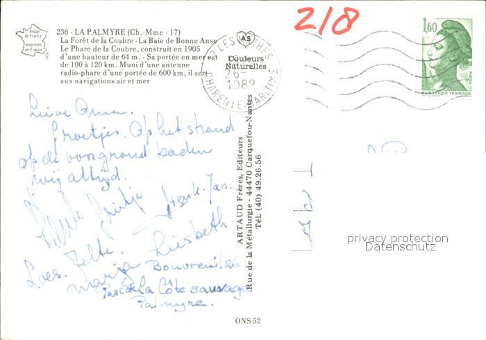 alte Postkarte Leuchtturm Lighthouse La Palmyre Foret de la Coubre Baie Bonne Anse postalisch gelaufen