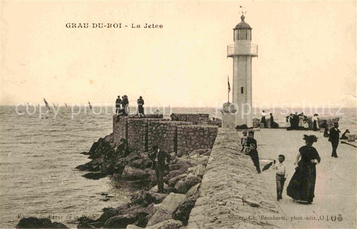 alte Postkarte Leuchtturm Lighthouse Le Grau-du-Roi Jetee postalisch gelaufen Erhaltung siehe scans [PaolaD17]