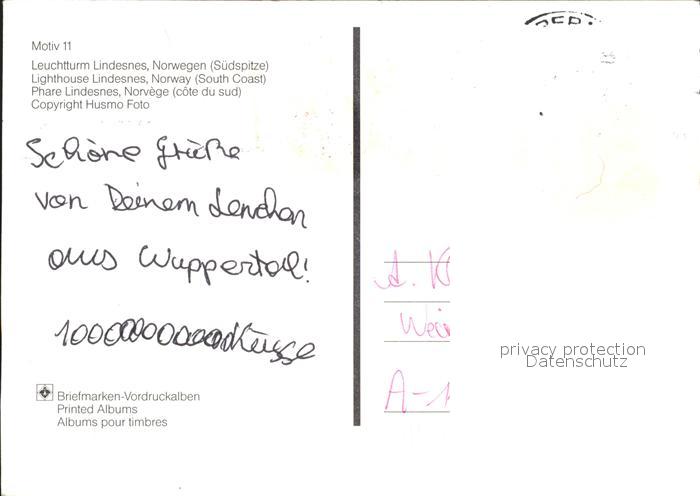 alte Postkarte Leuchtturm Lighthouse Lindesnes Norwegen Suedspitze postalisch gelaufen Erhaltung siehe scans