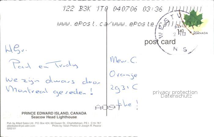 alte Postkarte Leuchtturm Lighthouse Prince Edward Island Canada Seacow Head Lighthouse postalisch gelaufen Erhaltung siehe scans