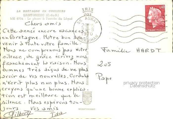 alte Postkarte Leuchtturm Lighthouse Saint-Brieuc Phare Legue postalisch gelaufen Erhaltung siehe scans