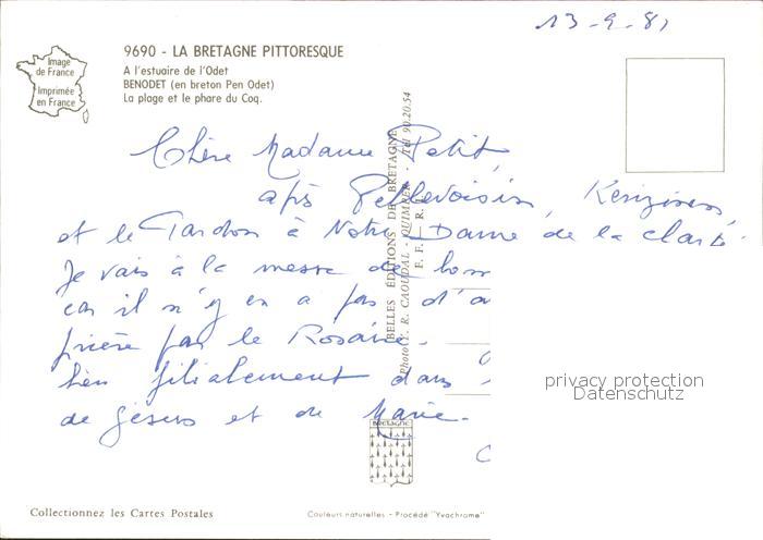 Leuchtturm Lighthouse Segelboot Benodet postalisch nicht gelaufen Erhaltung siehe scans