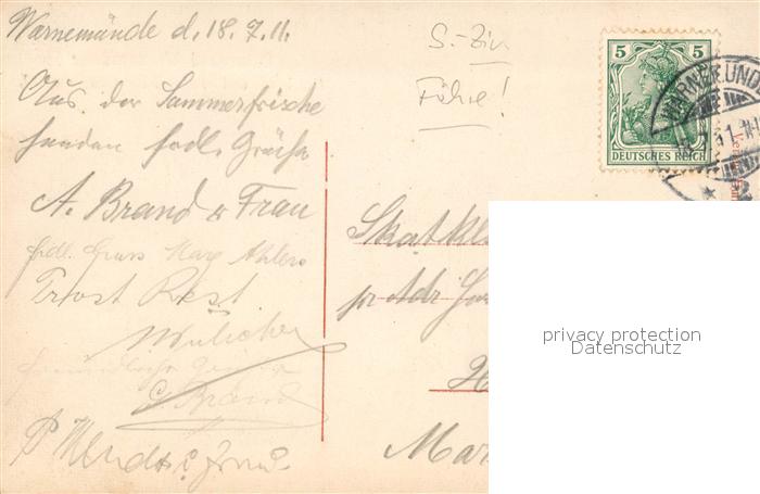 13550232 Leuchtturm Lighthouse Warnem?nde Mittelmole F?hrschiff Friedrich Franz IV. postalisch gelaufen Erhaltung siehe scans [PaolaD17] alte Postkarte Paol Katcode 22140000002000