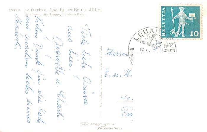 13919924 alte Postkarte Leukerbad Loueche-les-Bains VS Balmhorn Gitzifurgge Ferdenrothorn postalisch gelaufen Erhaltung siehe scans [FriedD77] KatCode: 11470230715544