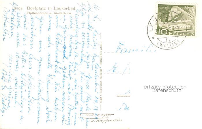 13821189 alte Postkarte Leukerbad Loueche-les-Bains VS Dorfplatz Plattenhoerner und Rinderhorn postalisch gelaufen Erhaltung siehe scans [FriedD77] KatCode: 11470230715544