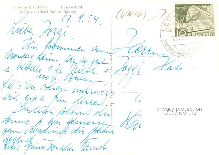 13866872 alte Postkarte Leukerbad Loueche-les-Bains VS La Place et l Hôtel Maison Blanche postalisch gelaufen Erhaltung siehe scans [FriedD77] KatCode: 11470230715544