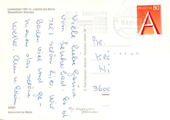 13921175 alte Postkarte Leukerbad Loueche-les-Bains VS Loeche les Bains Sesselbahn Marisse postalisch gelaufen Erhaltung siehe scans [FriedD77] KatCode: 11470230715544