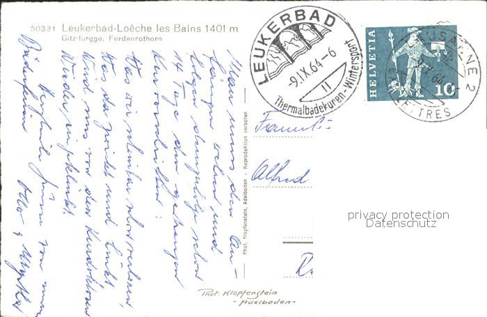 11745734 alte Postkarte Leukerbad mit Gitzifurgge und Ferdenrothorn postalisch gelaufen Erhaltung siehe scans KatCode: 11470230715544