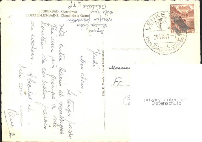11635485 alte Postkarte Leukerbad Panorama mit Gemmiweg postalisch gelaufen KatCode: 11470230715544