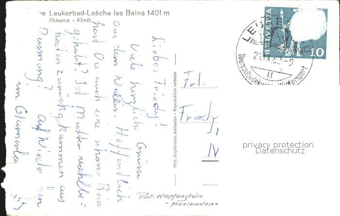 12585080 alte Postkarte Leukerbad Rheumaklinik postalisch gelaufen Erhaltung siehe scans [FriedD77] KatCode: 11470230715544