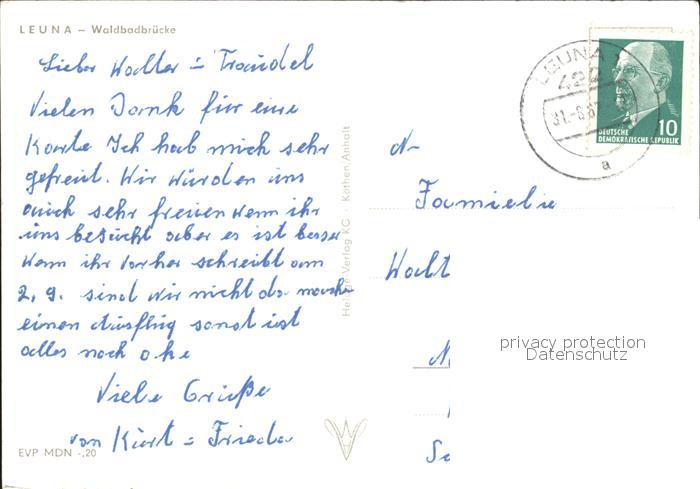 72060542 Leuna Waldbadbruecke postalisch nicht gelaufen Erhaltung siehe scans Alte Ansichtskarte Postkarte Frie Katcode 11110015088205