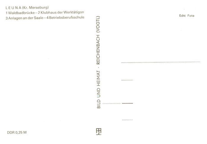73910399 Leuna Waldbadbruecke Klubhaus der Werktaetigen Anlagen an der Saale Betriebsberufsschule postalisch nicht gelaufen Erhaltung siehe scans [FriedD77] KatCode: 11110015088205