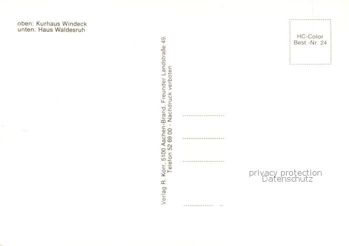 73121650 Leuscheid Kurhaus Windeck Haus Waldesruh postalisch nicht gelaufen Erhaltung siehe scans [KathaD81] KatCode: 11110005382076