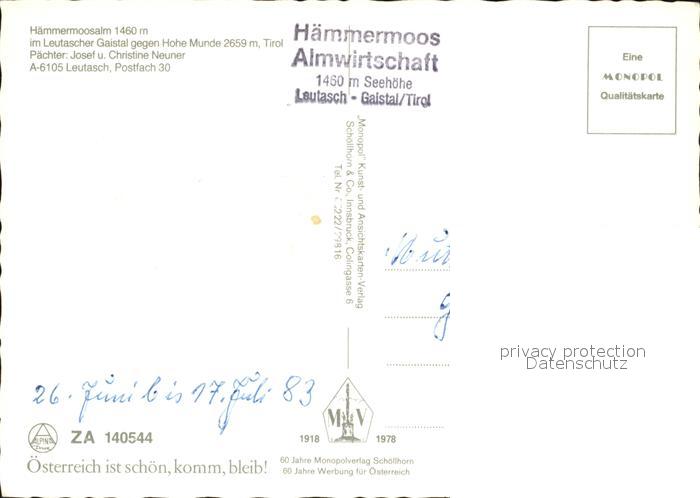 72391749 Leutasch Haemmermoosalm Leutascher Gaistal Hohe Munde postalisch nicht gelaufen Erhaltung siehe scans KatCode: 11390332070326