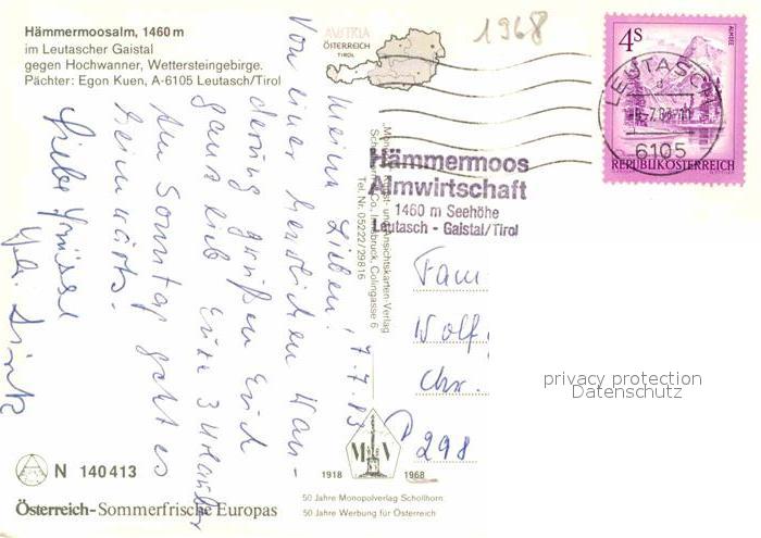 72898914 alte Postkarte Leutasch Haemmermoosalm postalisch gelaufen Erhaltung siehe scans [FriedD77] KatCode: 11390332070326