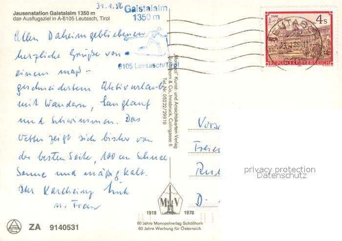 73656060 alte Postkarte Leutasch Jausenstation Gaistalalm postalisch gelaufen Erhaltung siehe scans [WerneD78] KatCode: 11390332070326